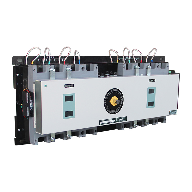 BKQ1系列CB级双电源自动转换开关电器适用于工作电压AC400V,额定频率50Hz,额定电流10A至800A的两路电源之间切换,执行元件为塑壳断路器。本产品适用于医院、商场、银行、宾馆和消防等不允许断电的重要负载。产品符合GB/T 14048.11《低压开关设备和控制设备 第 6-1 部分:多功能电器 转换开关电器》。